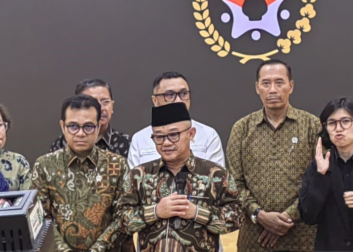 Menteri Pendidikan Dasar dan Menengah (Mendikdasmen) Abdul Mu'ti saat memberikan keterangan pers di Kemenko PMK Jakarta, Selasa (29/4/2025). (Foto: ANTARA)--